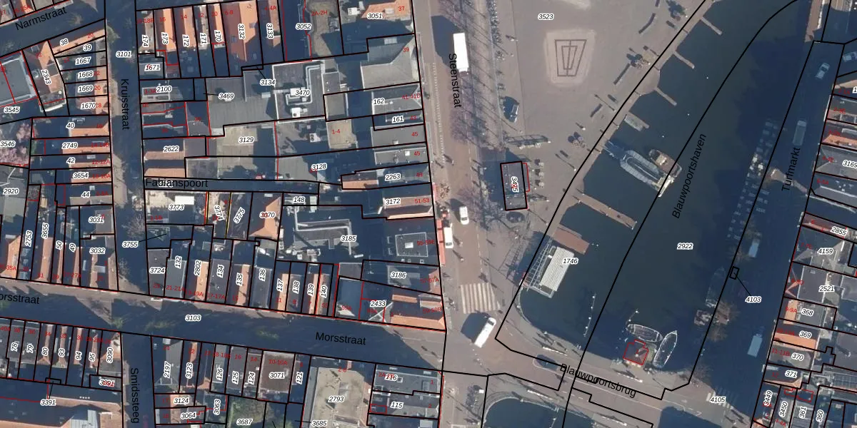 Steenstraat 53 is gelegen op kadastraal perceel LDN01B3172. Deze kadastrale aanduiding is uniek en wordt gebruikt door het Kadaster om eigendomsrechten en andere zakelijke rechten vast te leggen. Het perceel maakt onderdeel uit van de kadastrale gemeente Leiden.