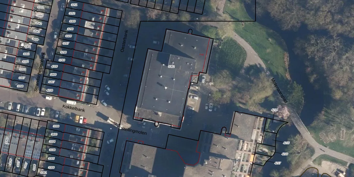 Stellingmolen 54 is gelegen op kadastraal perceel LDN01S5362. Deze kadastrale aanduiding is uniek en wordt gebruikt door het Kadaster om eigendomsrechten en andere zakelijke rechten vast te leggen. Het perceel maakt onderdeel uit van de kadastrale gemeente Leiden.