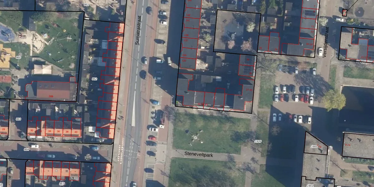Het perceel waarop Steneveltpark 59 staat heeft een oppervlakte van 3880 m². Dit is een zeer groot perceel. De perceeloppervlakte wordt geregistreerd door het Kadaster. Gedetailleerde informatie over de maten van dit perceel kunt u vinden in het rapport Kadastrale kaart met maatvoering van Steneveltpark 59.