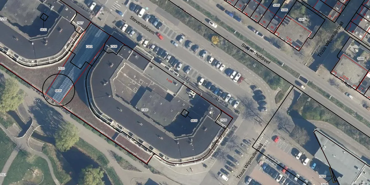 Het perceel waarop Stevensbloem 55 staat heeft een oppervlakte van 2841 m². Dit is een zeer groot perceel. De perceeloppervlakte wordt geregistreerd door het Kadaster. Gedetailleerde informatie over de maten van dit perceel kunt u vinden in het rapport Kadastrale kaart met maatvoering van Stevensbloem 55.