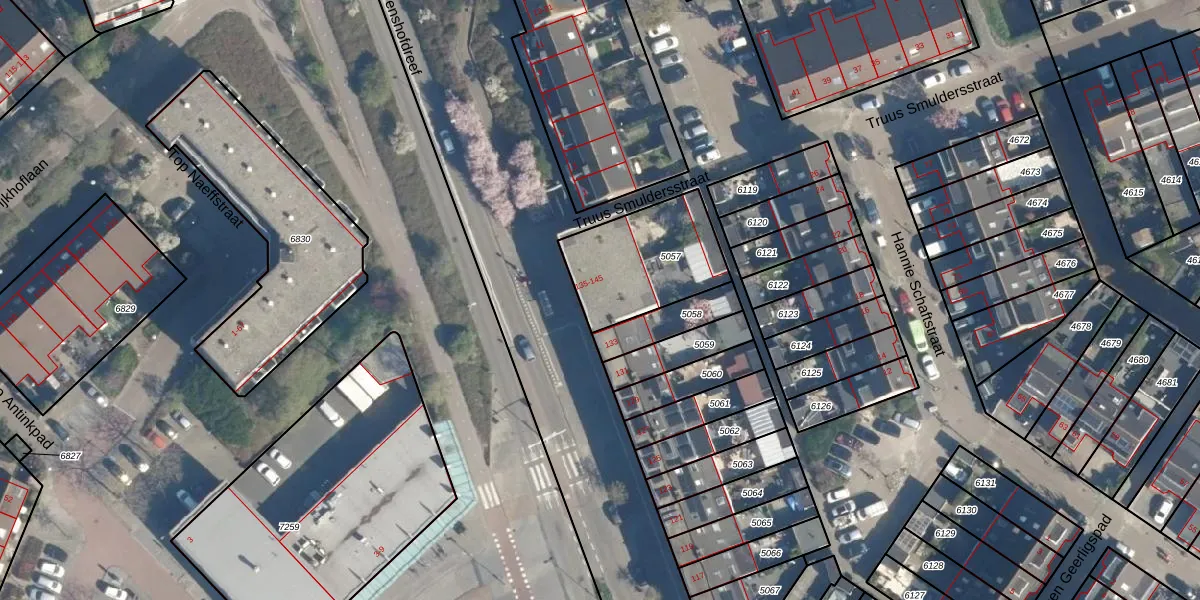 Het adres ligt op het perceel LDN01-W-5057, dat zich in de kadastrale gemeente Leiden bevindt. Het perceel is 411 m² groot. Dat is kleiner dan de gemiddelde perceeloppervlakte in Leiden, dat op 704,95 m² ligt. Het kleinste perceel in de kadastrale gemeente is 0 m² groot. De grootste perceeloppervlakte is 51,8 ha. Er zijn 6 adressen aanwezig op het perceel. De huidige grenzen van het perceel zijn digitaal in de Basisregistratie Kadaster (BRK) geregistreerd op 29-08-2003.