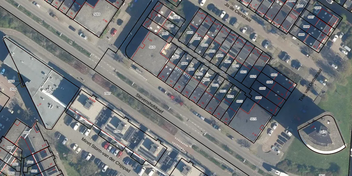 Stevenshofdreef 45 is gelegen op kadastraal perceel LDN01W6909. Deze kadastrale aanduiding is uniek en wordt gebruikt door het Kadaster om eigendomsrechten en andere zakelijke rechten vast te leggen. Het perceel maakt onderdeel uit van de kadastrale gemeente Leiden.