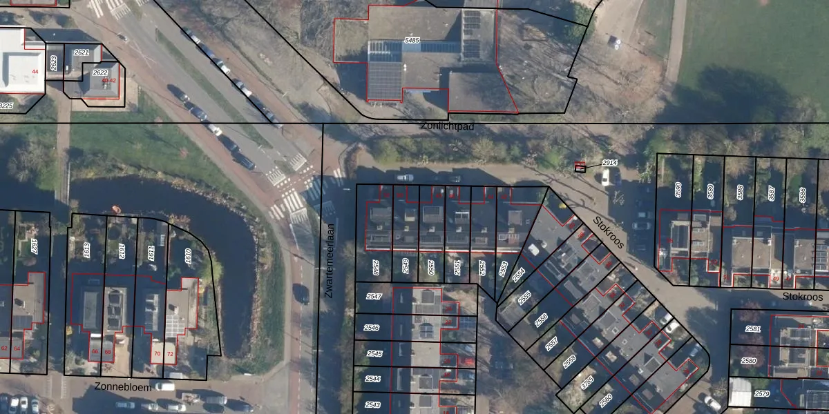 Stokroos 50 is gelegen op kadastraal perceel LDN01S2549. Deze kadastrale aanduiding is uniek en wordt gebruikt door het Kadaster om eigendomsrechten en andere zakelijke rechten vast te leggen. Het perceel maakt onderdeel uit van de kadastrale gemeente Leiden.