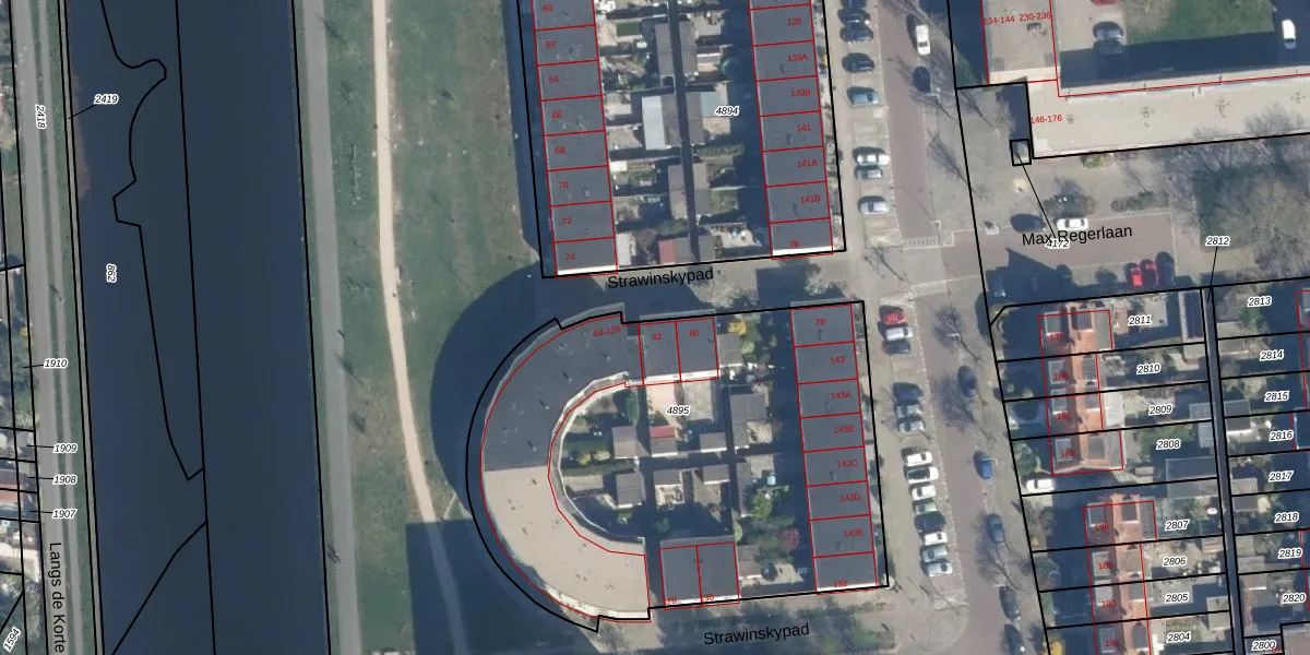 Strawinskypad 82 is gelegen op kadastraal perceel LDN01O4895. Deze kadastrale aanduiding is uniek en wordt gebruikt door het Kadaster om eigendomsrechten en andere zakelijke rechten vast te leggen. Het perceel maakt onderdeel uit van de kadastrale gemeente Leiden.