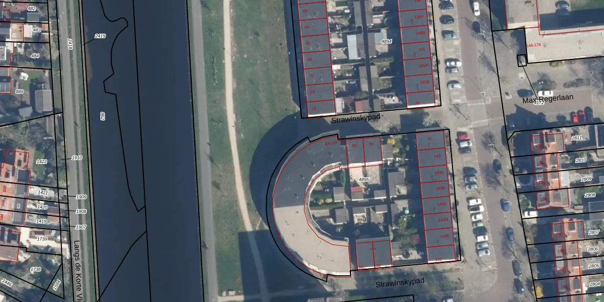 Strawinskypad 86 is gelegen op kadastraal perceel LDN01O4895. Deze kadastrale aanduiding is uniek en wordt gebruikt door het Kadaster om eigendomsrechten en andere zakelijke rechten vast te leggen. Het perceel maakt onderdeel uit van de kadastrale gemeente Leiden.