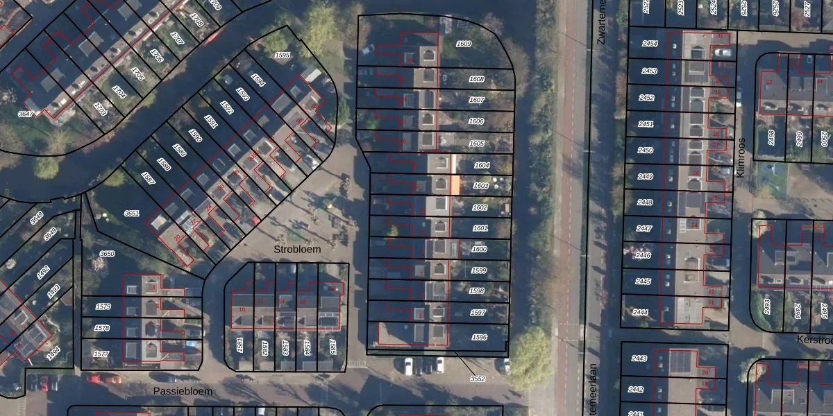 Gebruik de zoekbalk of klik op een perceel voor informatie over de adressen binnen dit perceel.