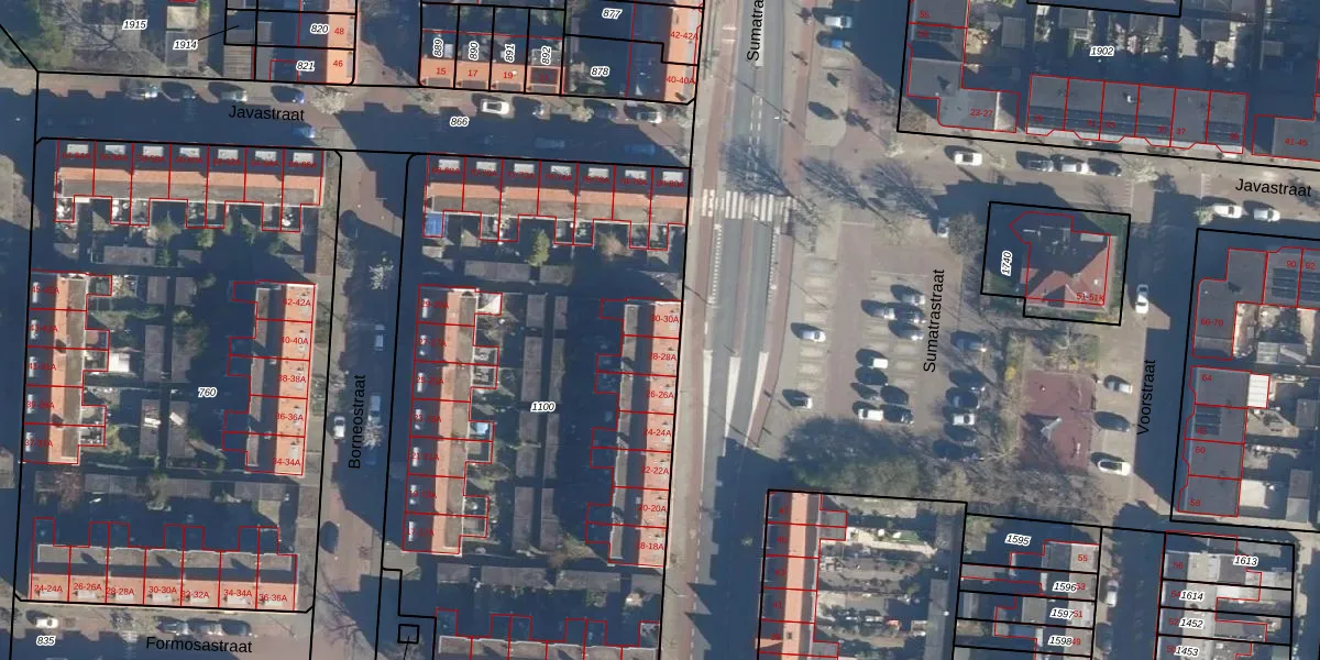 Het perceel waarop Sumatrastraat 30-A staat heeft een oppervlakte van 3404 m². Dit is een zeer groot perceel. De perceeloppervlakte wordt geregistreerd door het Kadaster. Gedetailleerde informatie over de maten van dit perceel kunt u vinden in het rapport Kadastrale kaart met maatvoering van Sumatrastraat 30-A.