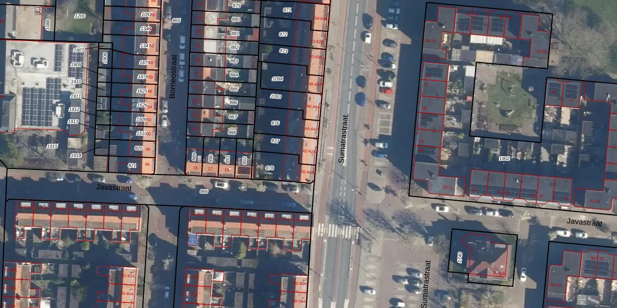 Sumatrastraat 42-A is gelegen op kadastraal perceel LDN01N877. Deze kadastrale aanduiding is uniek en wordt gebruikt door het Kadaster om eigendomsrechten en andere zakelijke rechten vast te leggen. Het perceel maakt onderdeel uit van de kadastrale gemeente Leiden.