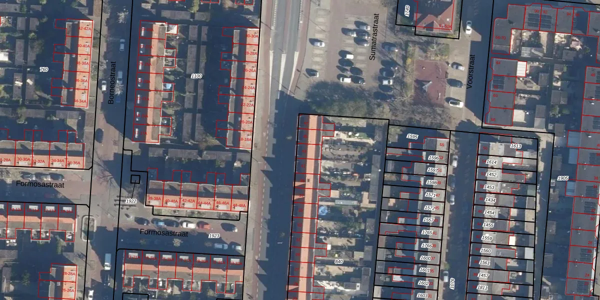 Het perceel waarop Sumatrastraat 43 staat heeft een oppervlakte van 3960 m². Dit is een zeer groot perceel. De perceeloppervlakte wordt geregistreerd door het Kadaster. Gedetailleerde informatie over de maten van dit perceel kunt u vinden in het rapport Kadastrale kaart met maatvoering van Sumatrastraat 43.
