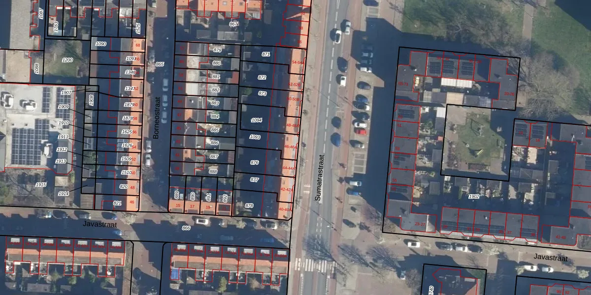 Sumatrastraat 46 is gelegen op kadastraal perceel LDN01N1093. Deze kadastrale aanduiding is uniek en wordt gebruikt door het Kadaster om eigendomsrechten en andere zakelijke rechten vast te leggen. Het perceel maakt onderdeel uit van de kadastrale gemeente Leiden.