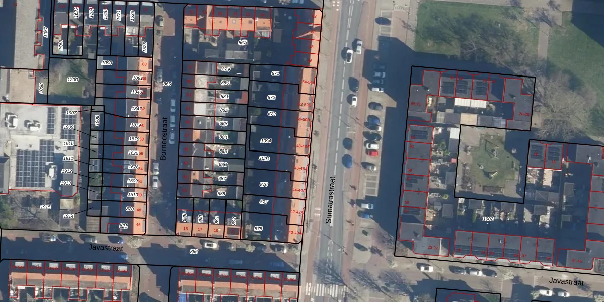 Het perceel waarop Sumatrastraat 48-A staat heeft een oppervlakte van 163 m². Dit is een middelgroot perceel. De perceeloppervlakte wordt geregistreerd door het Kadaster. Gedetailleerde informatie over de maten van dit perceel kunt u vinden in het rapport Kadastrale kaart met maatvoering van Sumatrastraat 48-A.