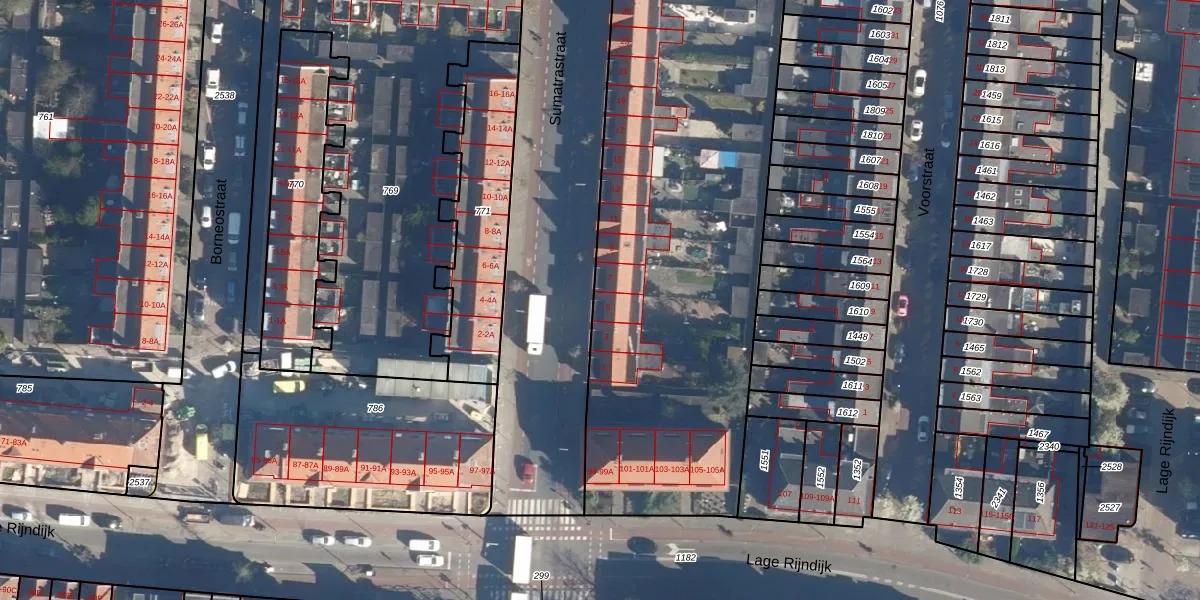 Het perceel waarop Sumatrastraat 5 staat heeft een oppervlakte van 3960 m². Dit is een zeer groot perceel. De perceeloppervlakte wordt geregistreerd door het Kadaster. Gedetailleerde informatie over de maten van dit perceel kunt u vinden in het rapport Kadastrale kaart met maatvoering van Sumatrastraat 5.