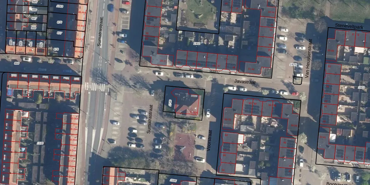 Het perceel waarop Sumatrastraat 51-G staat heeft een oppervlakte van 340 m². Dit is een groot perceel. De perceeloppervlakte wordt geregistreerd door het Kadaster. Gedetailleerde informatie over de maten van dit perceel kunt u vinden in het rapport Kadastrale kaart met maatvoering van Sumatrastraat 51-G.