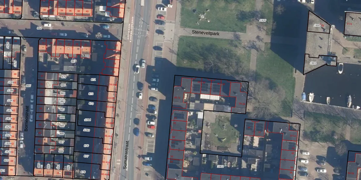 Sumatrastraat 69 is gelegen op kadastraal perceel LDN01N1902. Deze kadastrale aanduiding is uniek en wordt gebruikt door het Kadaster om eigendomsrechten en andere zakelijke rechten vast te leggen. Het perceel maakt onderdeel uit van de kadastrale gemeente Leiden.