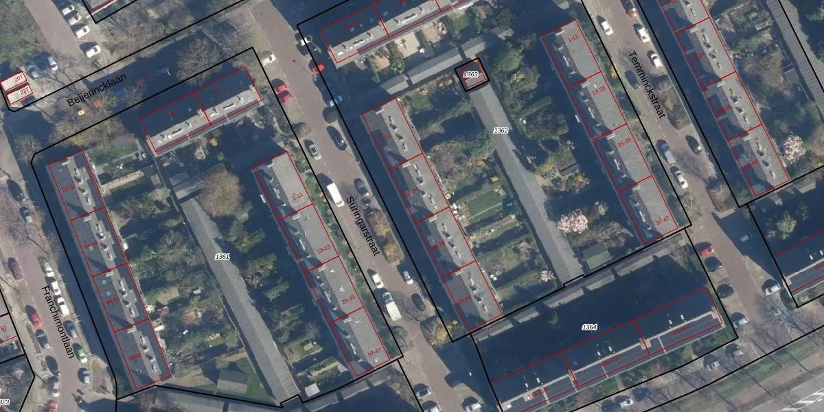 Suringarstraat 20 is gelegen op kadastraal perceel LDN01Q1362. Deze kadastrale aanduiding is uniek en wordt gebruikt door het Kadaster om eigendomsrechten en andere zakelijke rechten vast te leggen. Het perceel maakt onderdeel uit van de kadastrale gemeente Leiden.