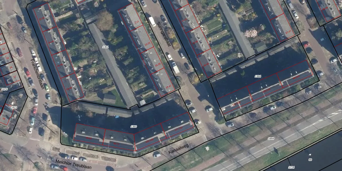 Suringarstraat 43 is gelegen op kadastraal perceel LDN01Q1361. Deze kadastrale aanduiding is uniek en wordt gebruikt door het Kadaster om eigendomsrechten en andere zakelijke rechten vast te leggen. Het perceel maakt onderdeel uit van de kadastrale gemeente Leiden.
