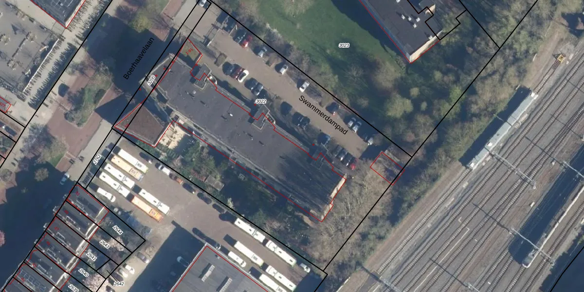 Swammerdampad 59 is gelegen op kadastraal perceel LDN01P3022. Deze kadastrale aanduiding is uniek en wordt gebruikt door het Kadaster om eigendomsrechten en andere zakelijke rechten vast te leggen. Het perceel maakt onderdeel uit van de kadastrale gemeente Leiden.