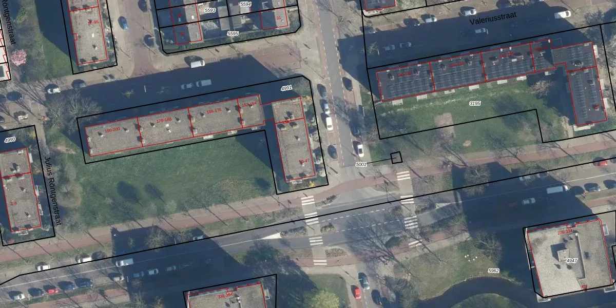 Het perceel waarop het adres ligt is LDN01-O-4991. De afkorting 'LDN01' staat voor kadastrale gemeente Leiden. De gemiddelde perceeloppervlakte in de kadastrale gemeente Leiden is 703,94 m². Dit perceel is met zijn 1530 m² dus groter dan gemiddeld. Het kleinste perceel in de kadastrale gemeente is 0 m² groot. De grootste perceeloppervlakte is 51,8 ha. Op het perceel zijn 33 adressen aanwezig. De huidige grenzen van het perceel zijn digitaal in de Basisregistratie Kadaster (BRK) geregistreerd op 13-09-2005.