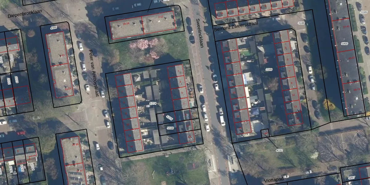 Het perceel waarop Sweelincklaan 5 staat heeft een oppervlakte van 1860 m². Dit is een zeer groot perceel. De perceeloppervlakte wordt geregistreerd door het Kadaster. Gedetailleerde informatie over de maten van dit perceel kunt u vinden in het rapport Kadastrale kaart met maatvoering van Sweelincklaan 5.