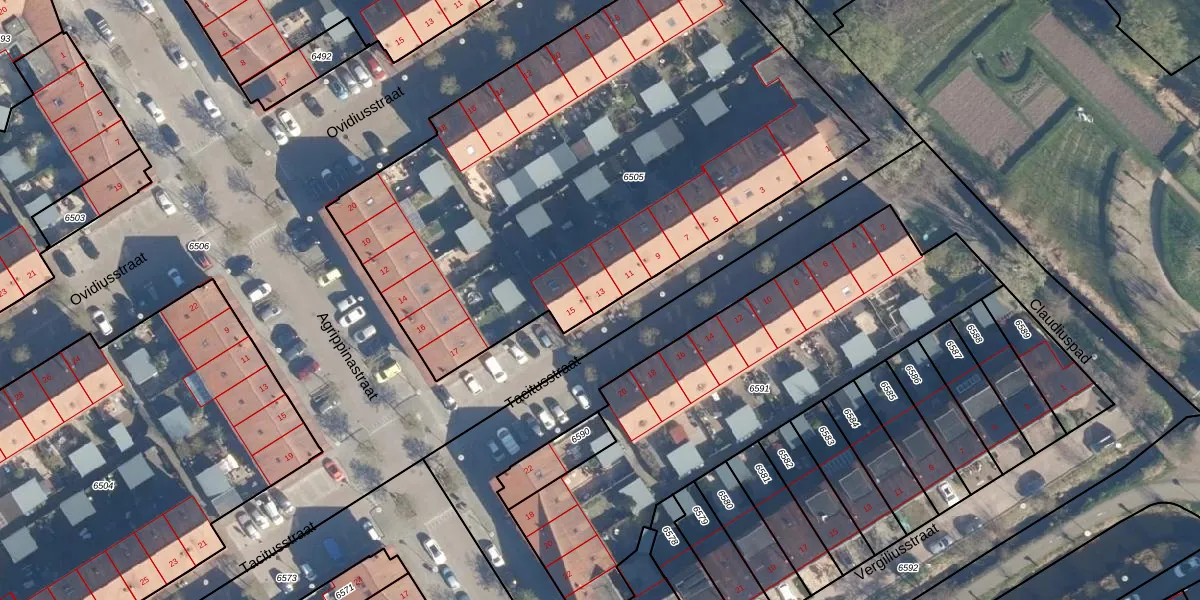 Tacitusstraat 13 is gelegen op kadastraal perceel LDN01T6505. Deze kadastrale aanduiding is uniek en wordt gebruikt door het Kadaster om eigendomsrechten en andere zakelijke rechten vast te leggen. Het perceel maakt onderdeel uit van de kadastrale gemeente Leiden.