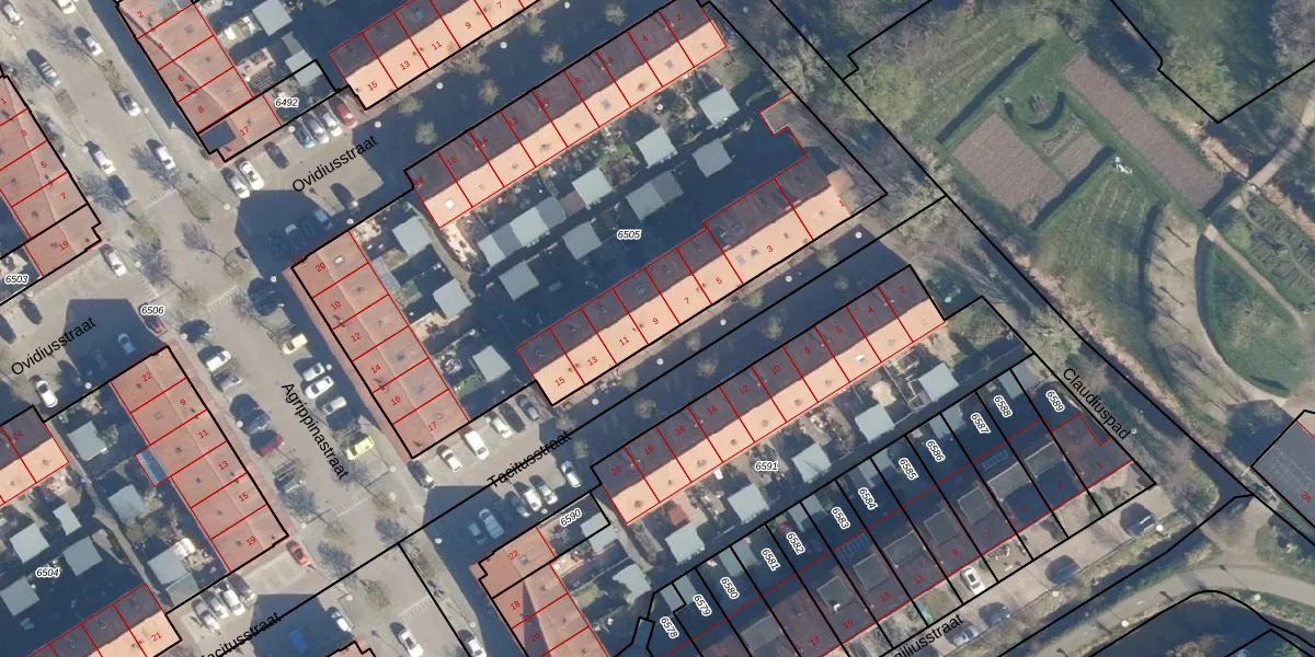 Tacitusstraat 9 is gelegen op kadastraal perceel LDN01T6505. Deze kadastrale aanduiding is uniek en wordt gebruikt door het Kadaster om eigendomsrechten en andere zakelijke rechten vast te leggen. Het perceel maakt onderdeel uit van de kadastrale gemeente Leiden.