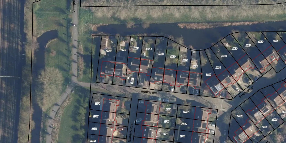 Gebruik de zoekbalk of klik op een perceel voor informatie over de adressen binnen dit perceel.