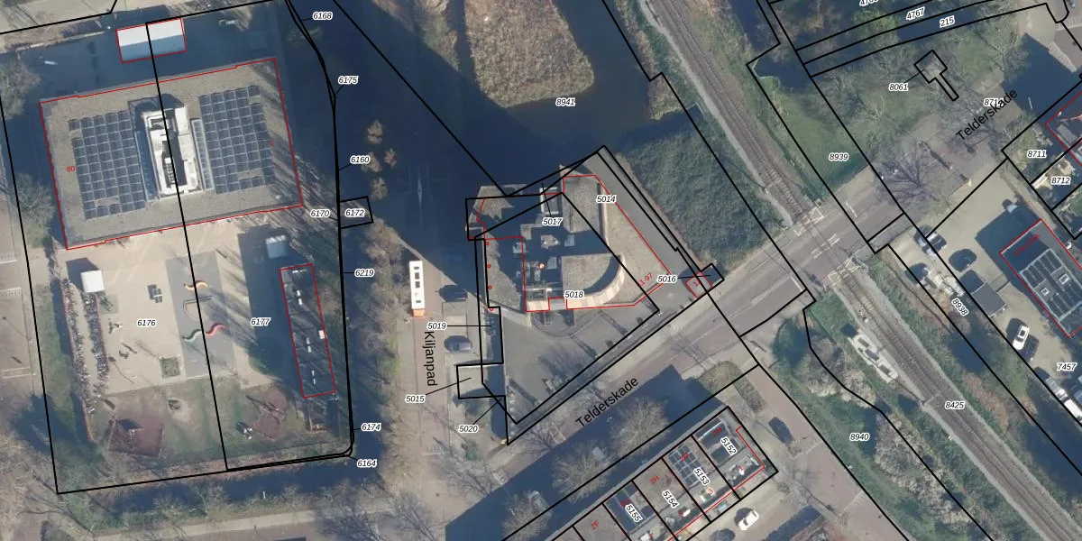 Telderskade 33 is gelegen op kadastraal perceel LDN01O5018. Deze kadastrale aanduiding is uniek en wordt gebruikt door het Kadaster om eigendomsrechten en andere zakelijke rechten vast te leggen. Het perceel maakt onderdeel uit van de kadastrale gemeente Leiden.