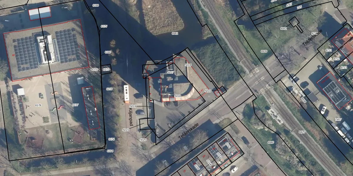 Telderskade 37 is gelegen op kadastraal perceel LDN01O5018. Deze kadastrale aanduiding is uniek en wordt gebruikt door het Kadaster om eigendomsrechten en andere zakelijke rechten vast te leggen. Het perceel maakt onderdeel uit van de kadastrale gemeente Leiden.