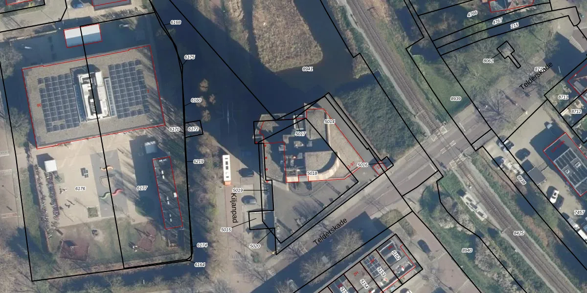 Telderskade 57 is gelegen op kadastraal perceel LDN01O5018. Deze kadastrale aanduiding is uniek en wordt gebruikt door het Kadaster om eigendomsrechten en andere zakelijke rechten vast te leggen. Het perceel maakt onderdeel uit van de kadastrale gemeente Leiden.