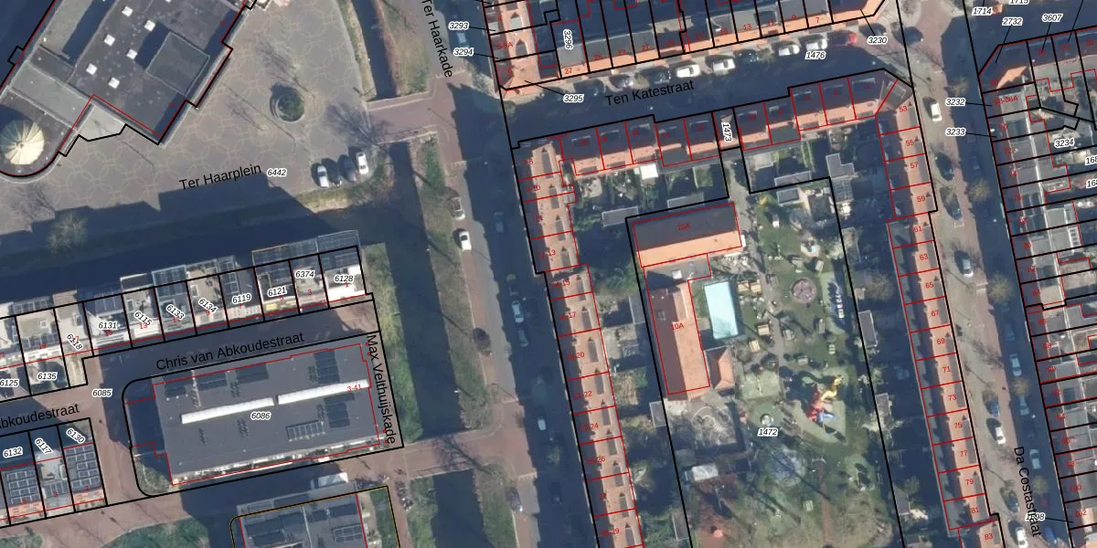 Ter Haarkade 15 is gelegen op kadastraal perceel LDN01O1474. Deze kadastrale aanduiding is uniek en wordt gebruikt door het Kadaster om eigendomsrechten en andere zakelijke rechten vast te leggen. Het perceel maakt onderdeel uit van de kadastrale gemeente Leiden.
