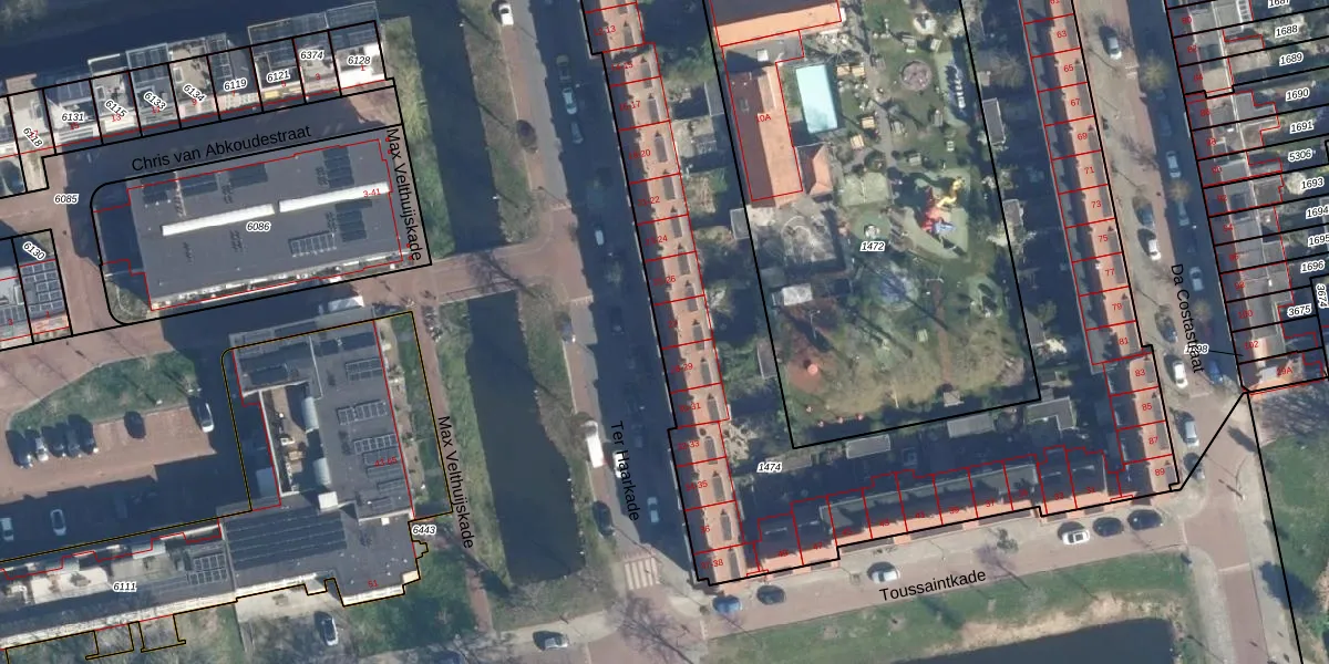Ter Haarkade 27 is gelegen op kadastraal perceel LDN01O1474. Deze kadastrale aanduiding is uniek en wordt gebruikt door het Kadaster om eigendomsrechten en andere zakelijke rechten vast te leggen. Het perceel maakt onderdeel uit van de kadastrale gemeente Leiden.