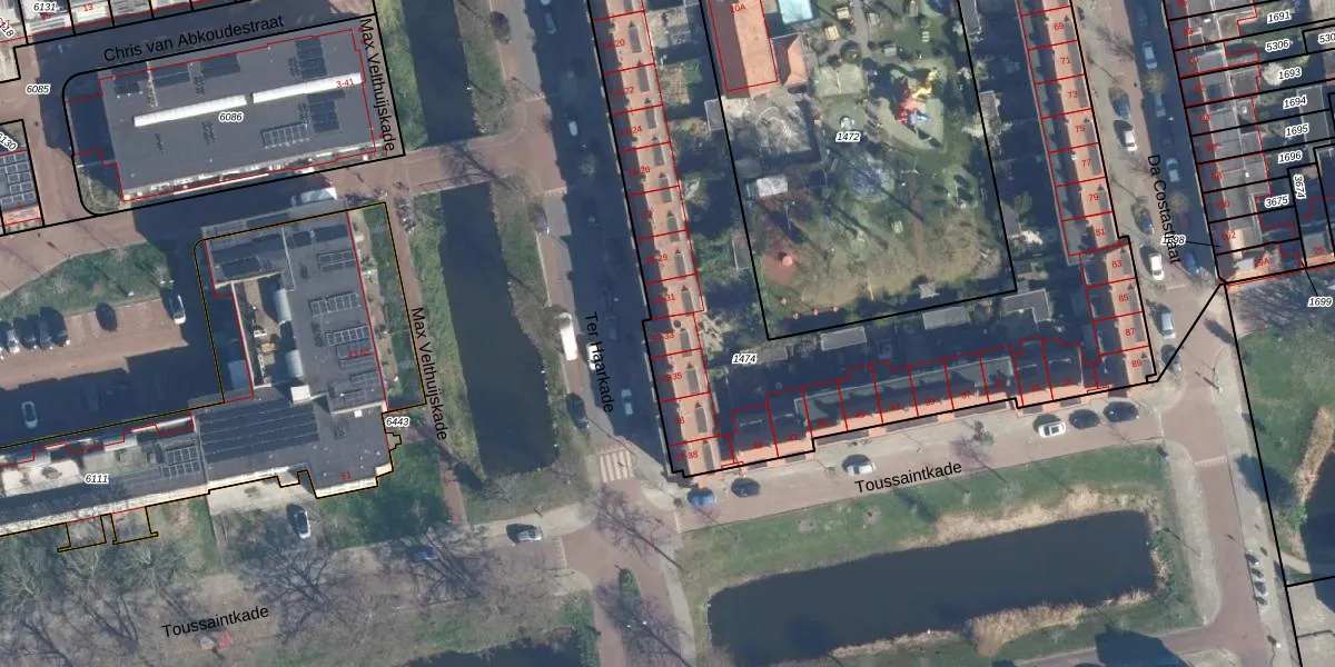 Ter Haarkade 32 is gelegen op kadastraal perceel LDN01O1474. Deze kadastrale aanduiding is uniek en wordt gebruikt door het Kadaster om eigendomsrechten en andere zakelijke rechten vast te leggen. Het perceel maakt onderdeel uit van de kadastrale gemeente Leiden.