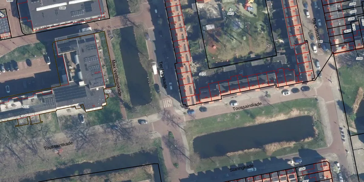 Ter Haarkade 36 is gelegen op kadastraal perceel LDN01O1474. Deze kadastrale aanduiding is uniek en wordt gebruikt door het Kadaster om eigendomsrechten en andere zakelijke rechten vast te leggen. Het perceel maakt onderdeel uit van de kadastrale gemeente Leiden.