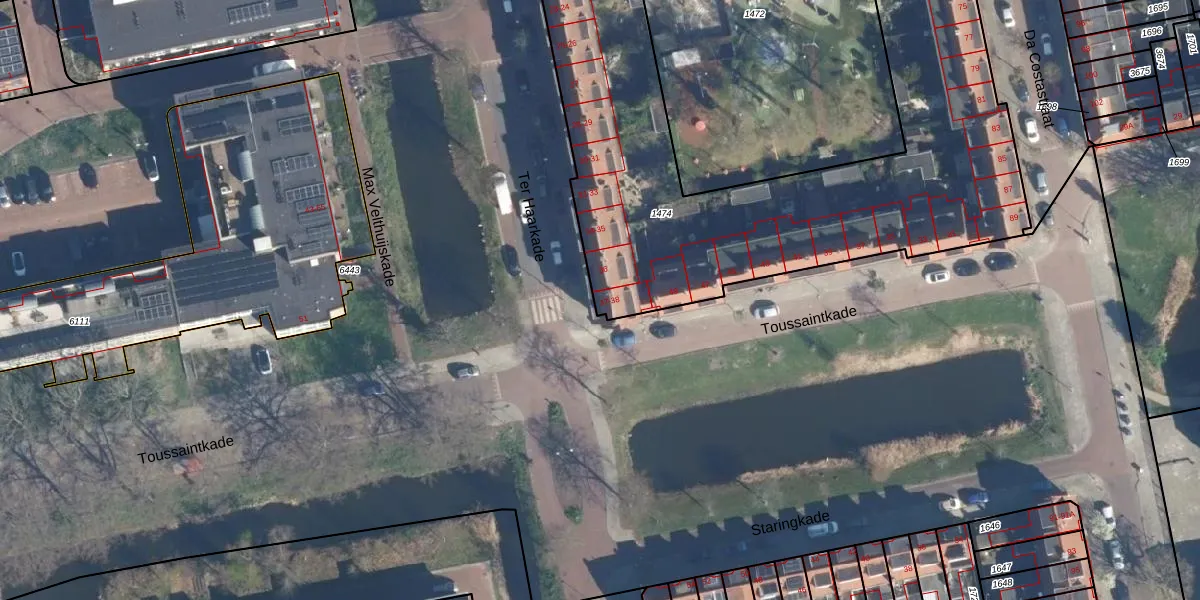 Ter Haarkade 38 is gelegen op kadastraal perceel LDN01O1474. Deze kadastrale aanduiding is uniek en wordt gebruikt door het Kadaster om eigendomsrechten en andere zakelijke rechten vast te leggen. Het perceel maakt onderdeel uit van de kadastrale gemeente Leiden.