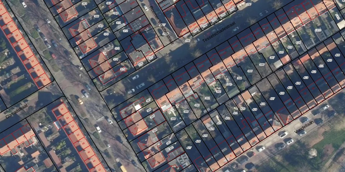 Het perceel waarop Tesselschadestraat 3-A staat heeft een oppervlakte van 226 m². Dit is een middelgroot perceel. De perceeloppervlakte wordt geregistreerd door het Kadaster. Gedetailleerde informatie over de maten van dit perceel kunt u vinden in het rapport Kadastrale kaart met maatvoering van Tesselschadestraat 3-A.