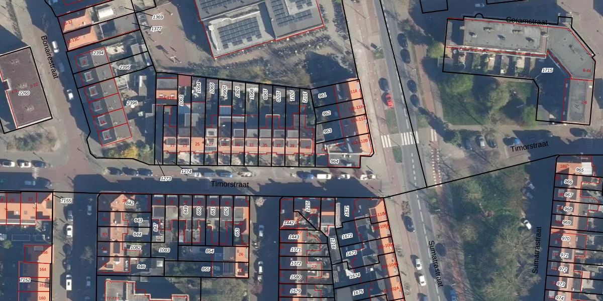 Het perceel waarop Timorstraat 41 staat heeft een oppervlakte van 135 m². Dit is een middelgroot perceel. De perceeloppervlakte wordt geregistreerd door het Kadaster. Gedetailleerde informatie over de maten van dit perceel kunt u vinden in het rapport Kadastrale kaart met maatvoering van Timorstraat 41.