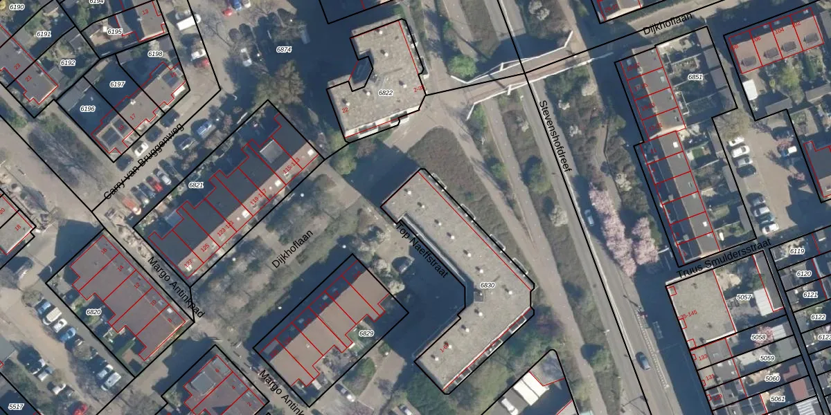 Het adres ligt op het perceel LDN01-W-6830, dat zich in de kadastrale gemeente Leiden bevindt. Het perceel is met 805 m² relatief groot. Het gemiddelde ligt in de kadastrale gemeente Leiden op 703,99 m². De grootste perceeloppervlakte in de kadastrale gemeente is 51,8 ha. De kleinste oppervlakte bedraagt 0 m². Er zijn 39 adressen aanwezig op het perceel. De laatste wijziging in het de Basisregistratie Kadaster (BRK) was op 29-08-2003.