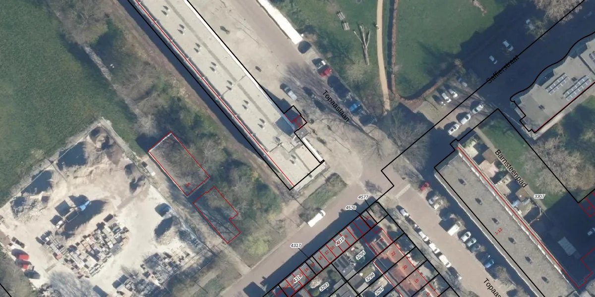 Topaaslaan 100 is gelegen op kadastraal perceel LDN01X4109. Deze kadastrale aanduiding is uniek en wordt gebruikt door het Kadaster om eigendomsrechten en andere zakelijke rechten vast te leggen. Het perceel maakt onderdeel uit van de kadastrale gemeente Leiden.