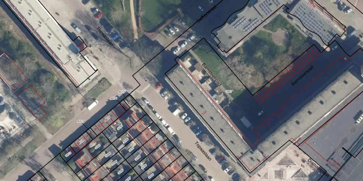Topaaslaan 11 is gelegen op kadastraal perceel LDN01X3307. Deze kadastrale aanduiding is uniek en wordt gebruikt door het Kadaster om eigendomsrechten en andere zakelijke rechten vast te leggen. Het perceel maakt onderdeel uit van de kadastrale gemeente Leiden.