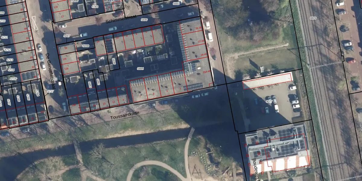 Het perceel waarop Toussaintkade 1 staat heeft een oppervlakte van 2775 m². Dit is een zeer groot perceel. De perceeloppervlakte wordt geregistreerd door het Kadaster. Gedetailleerde informatie over de maten van dit perceel kunt u vinden in het rapport Kadastrale kaart met maatvoering van Toussaintkade 1.