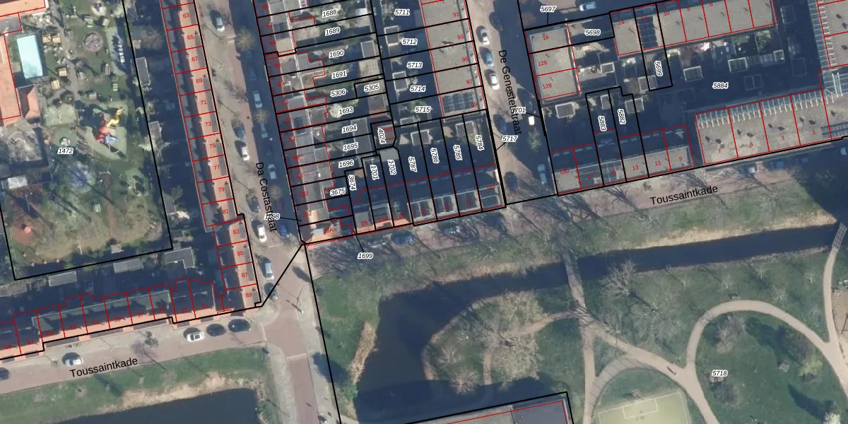 Gebruik de zoekbalk of klik op een perceel voor informatie over de adressen binnen dit perceel.