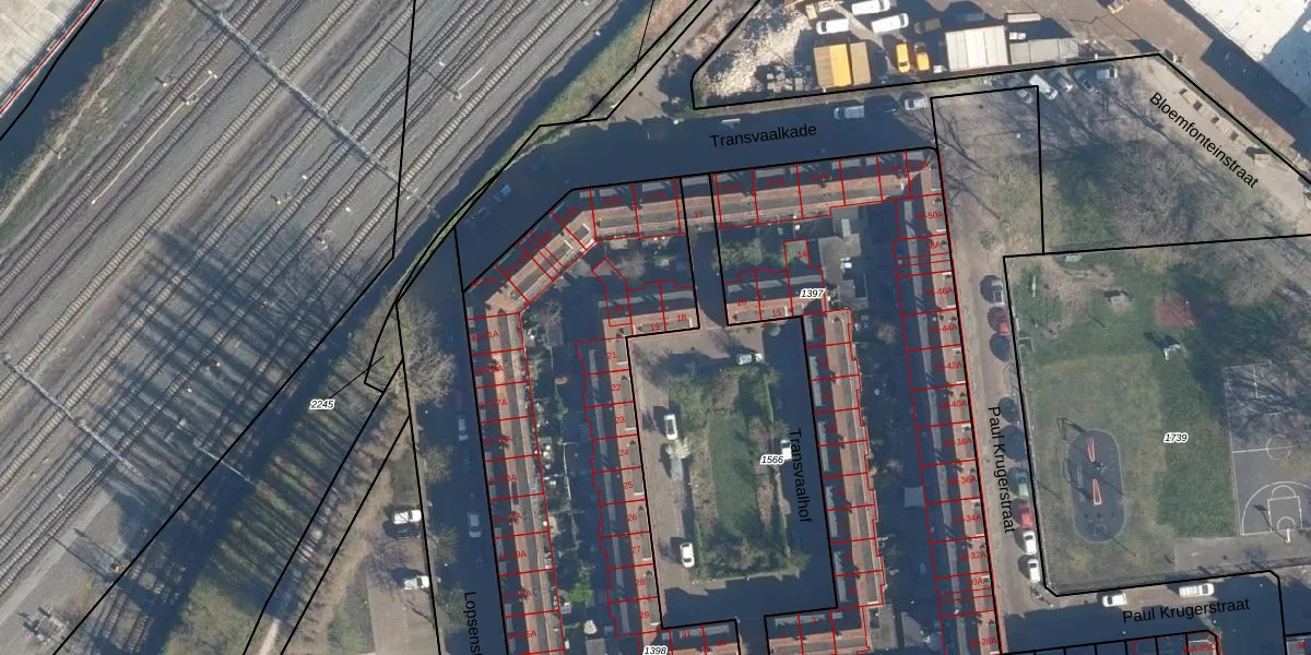 Het perceel waarop Transvaalhof 19 staat heeft een oppervlakte van 2590 m². Dit is een zeer groot perceel. De perceeloppervlakte wordt geregistreerd door het Kadaster. Gedetailleerde informatie over de maten van dit perceel kunt u vinden in het rapport Kadastrale kaart met maatvoering van Transvaalhof 19.