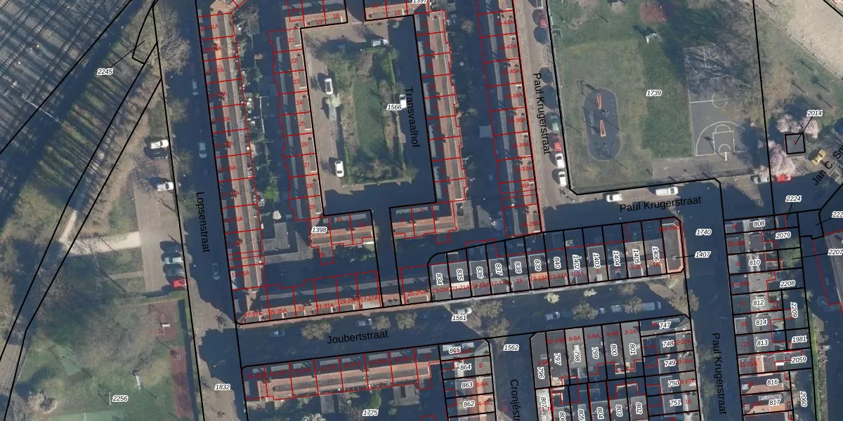 Het perceel waarop Transvaalhof 3 staat heeft een oppervlakte van 2410 m². Dit is een zeer groot perceel. De perceeloppervlakte wordt geregistreerd door het Kadaster. Gedetailleerde informatie over de maten van dit perceel kunt u vinden in het rapport Kadastrale kaart met maatvoering van Transvaalhof 3.