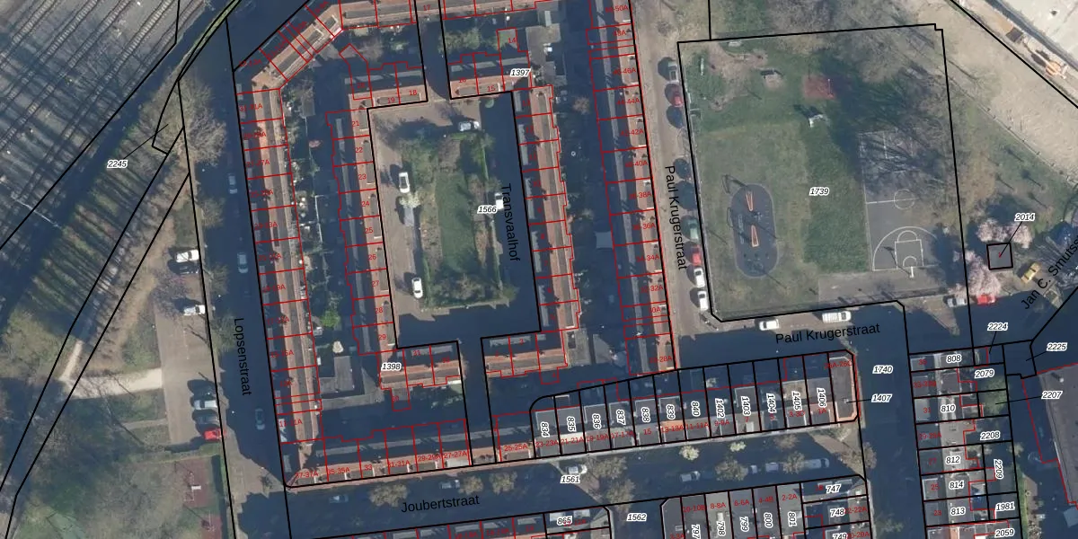 Het perceel waarop Transvaalhof 7 staat heeft een oppervlakte van 2410 m². Dit is een zeer groot perceel. De perceeloppervlakte wordt geregistreerd door het Kadaster. Gedetailleerde informatie over de maten van dit perceel kunt u vinden in het rapport Kadastrale kaart met maatvoering van Transvaalhof 7.
