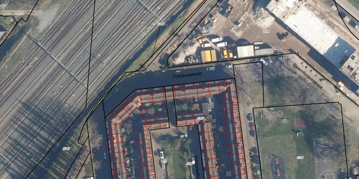 Transvaalkade 6-A is gelegen op kadastraal perceel LDN01L1397. Deze kadastrale aanduiding is uniek en wordt gebruikt door het Kadaster om eigendomsrechten en andere zakelijke rechten vast te leggen. Het perceel maakt onderdeel uit van de kadastrale gemeente Leiden.