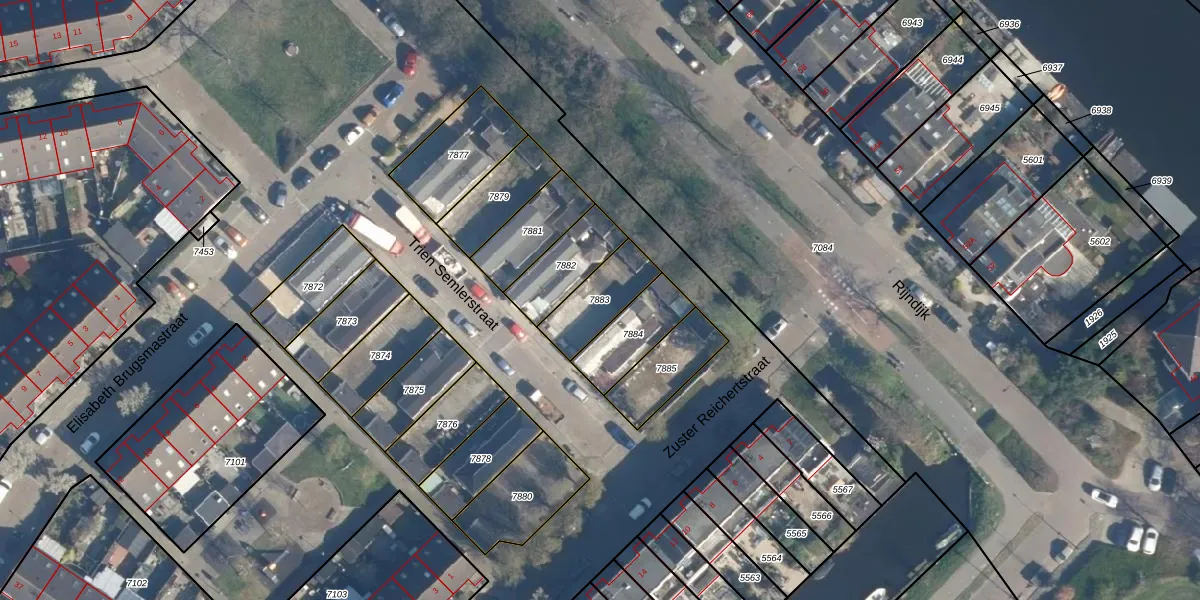 Trien Semlerstraat 5 is gelegen op kadastraal perceel LDN01W7883. Deze kadastrale aanduiding is uniek en wordt gebruikt door het Kadaster om eigendomsrechten en andere zakelijke rechten vast te leggen. Het perceel maakt onderdeel uit van de kadastrale gemeente Leiden.