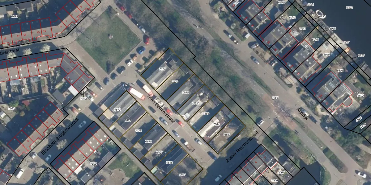Trien Semlerstraat 9 is gelegen op kadastraal perceel LDN01W7881. Deze kadastrale aanduiding is uniek en wordt gebruikt door het Kadaster om eigendomsrechten en andere zakelijke rechten vast te leggen. Het perceel maakt onderdeel uit van de kadastrale gemeente Leiden.
