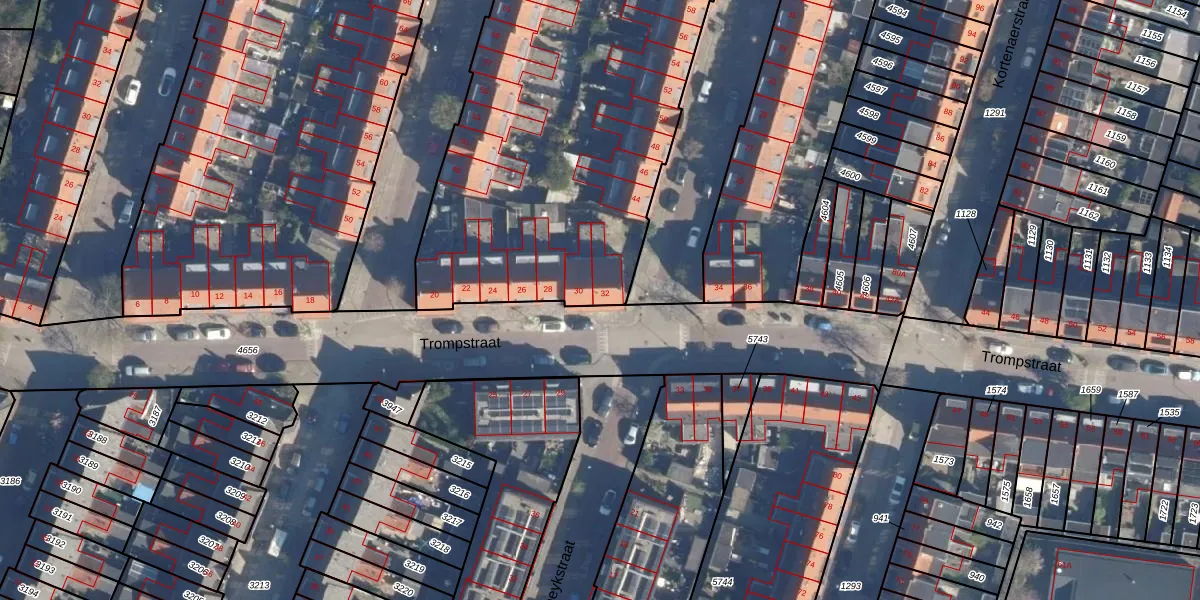 Trompstraat 32 is gelegen op kadastraal perceel LDN01K4187. Deze kadastrale aanduiding is uniek en wordt gebruikt door het Kadaster om eigendomsrechten en andere zakelijke rechten vast te leggen. Het perceel maakt onderdeel uit van de kadastrale gemeente Leiden.