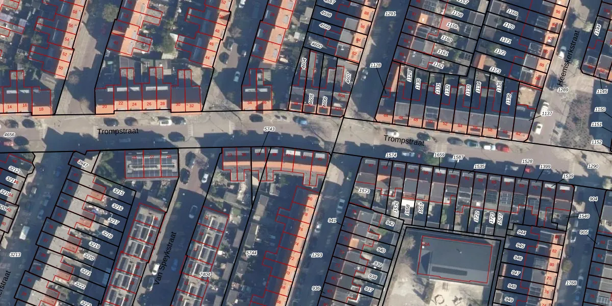 Het perceel waarop Trompstraat 43 staat heeft een oppervlakte van 1701 m². Dit is een zeer groot perceel. De perceeloppervlakte wordt geregistreerd door het Kadaster. Gedetailleerde informatie over de maten van dit perceel kunt u vinden in het rapport Kadastrale kaart met maatvoering van Trompstraat 43.