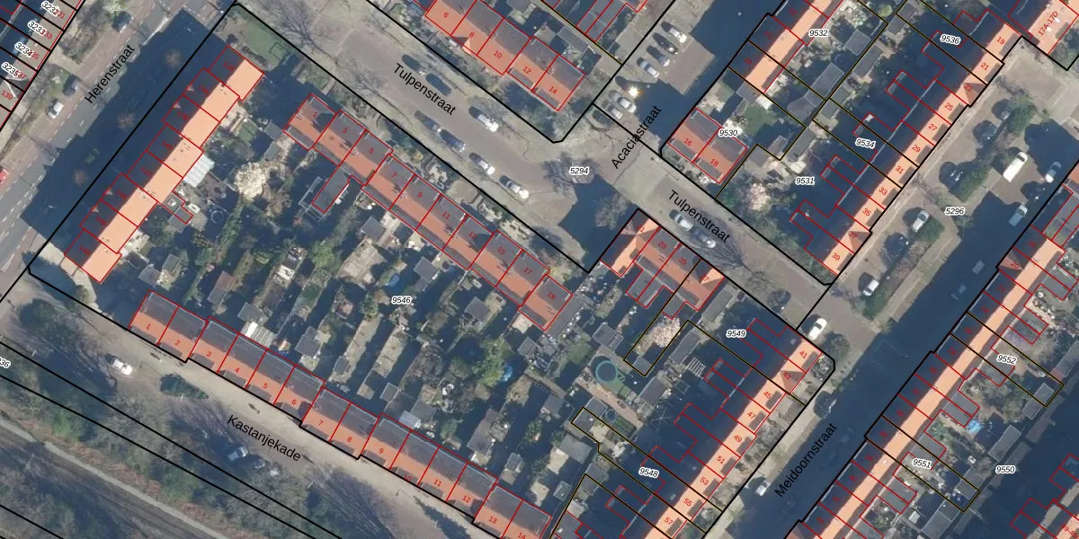 Het perceel waarop Tulpenstraat 17 staat heeft een oppervlakte van 6737 m². Dit is een zeer groot perceel. De perceeloppervlakte wordt geregistreerd door het Kadaster. Gedetailleerde informatie over de maten van dit perceel kunt u vinden in het rapport Kadastrale kaart met maatvoering van Tulpenstraat 17.